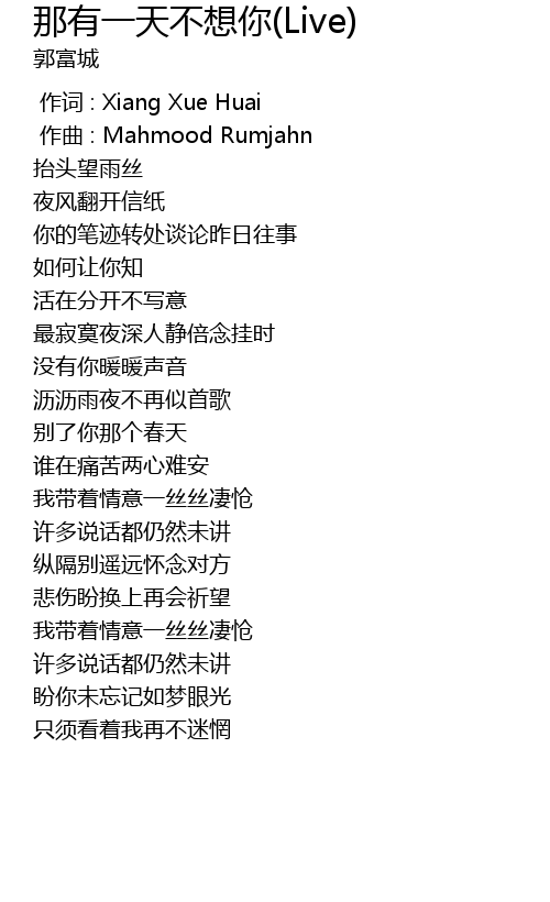 | [00:00.000] | 作词 : Xiang Xue Huai |