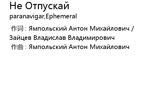 | [00:00.000] | 作词 : Ямпольский Антон Михайлович / Зайцев Владислав Владимирович |