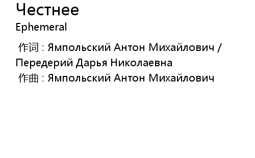 | [00:00.000] | 作词 : Ямпольский Антон Михайлович / Передерий Дарья Николаевна |