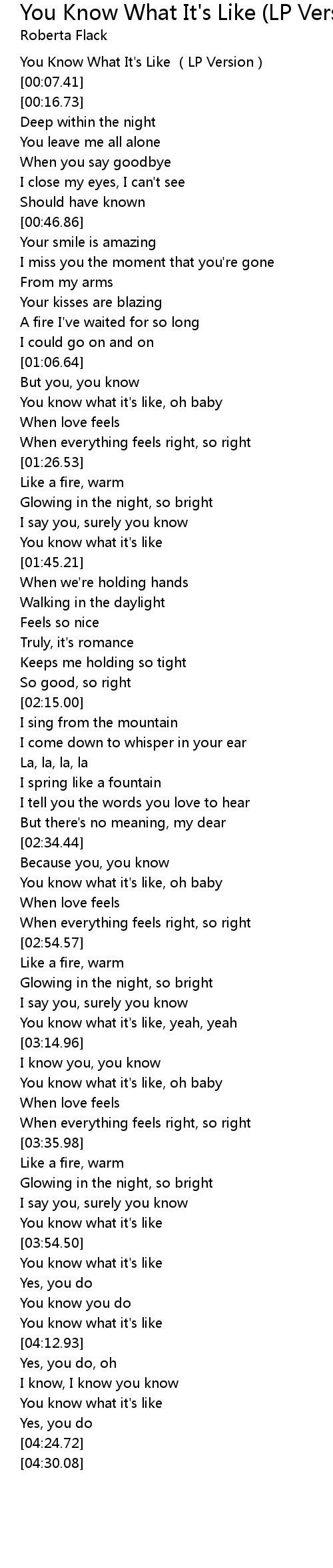 | [00:00.00] | You Know What It's Like (LP Version) |
