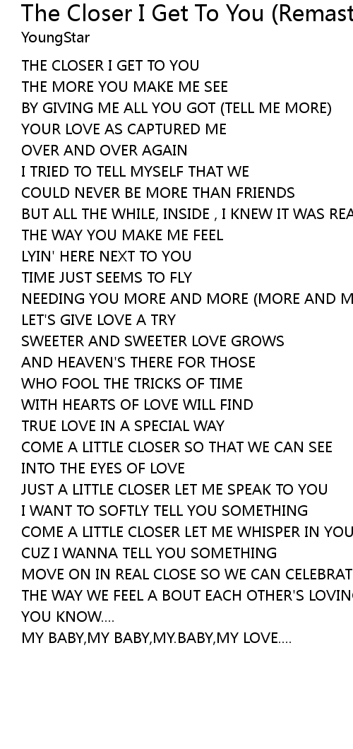 JUST A LITTLE CLOSER LET ME SPEAK TO YOU |