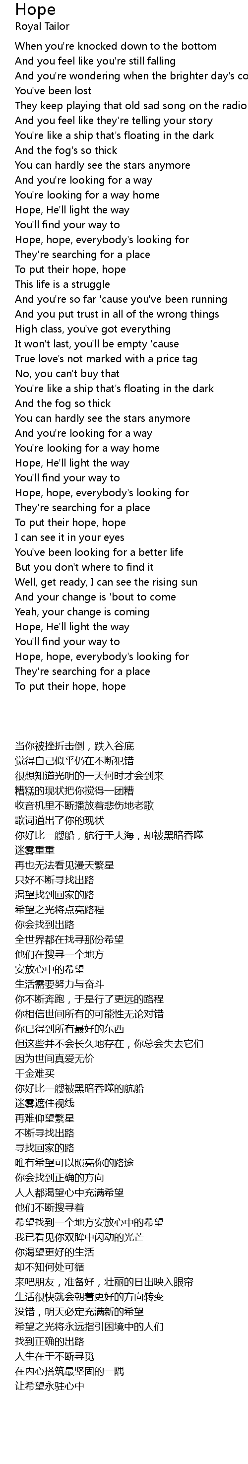 Hope, hope, everybody's looking for |