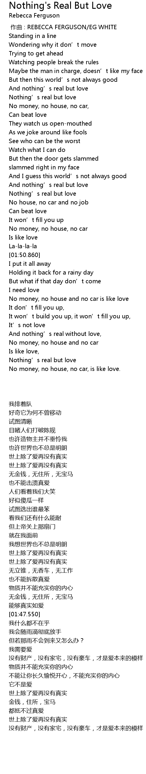 | [00:00.00] | 作曲 : REBECCA FERGUSON/EG WHITE |