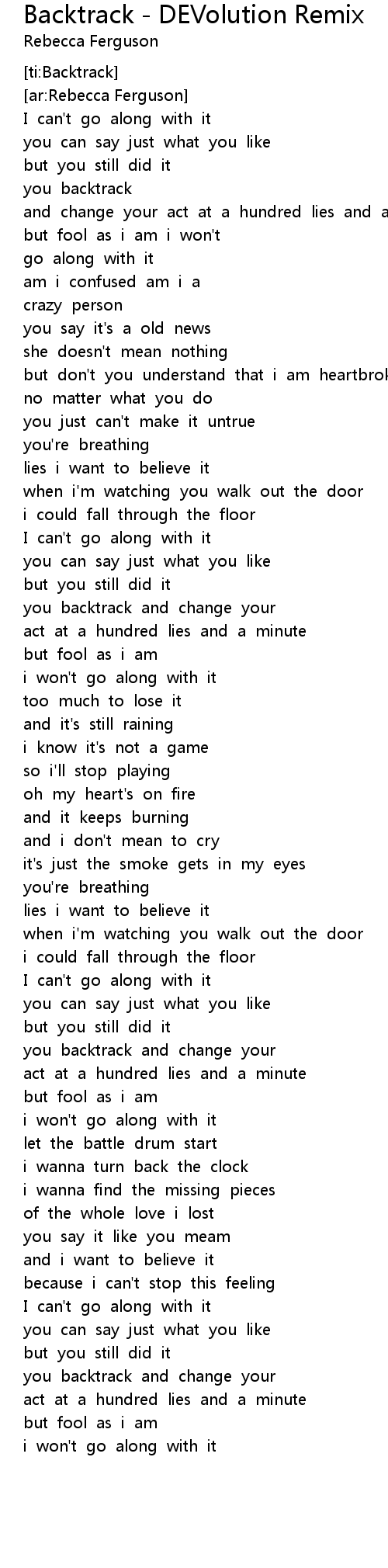 Backtrack - DEVolution Remix Lyrics