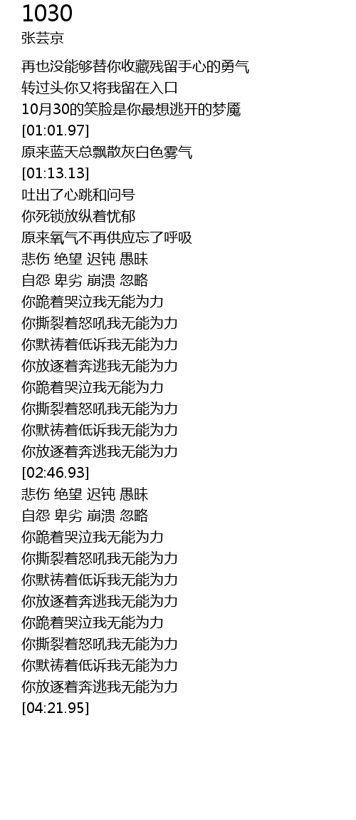 | [00:54.69] | 10月30的笑脸是你最想逃开的梦魇 |