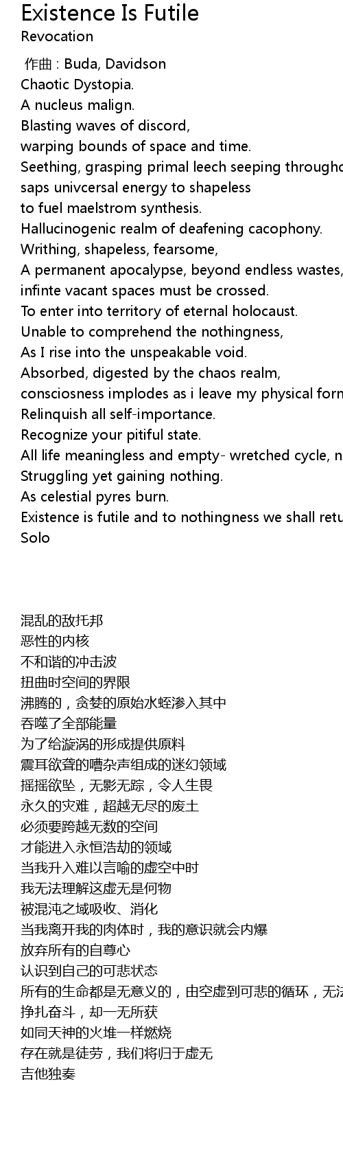 | [03:19.03] | Existence is futile and to nothingness we shall return. |