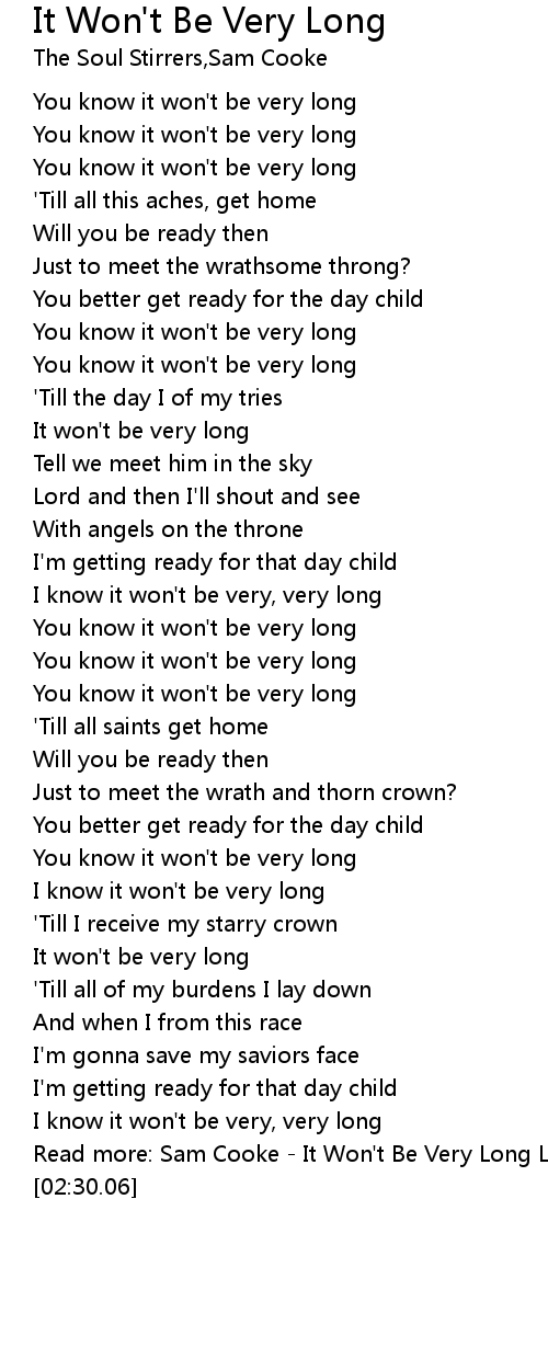 Read more: Sam Cooke - It Won't Be Very Long Lyrics | MetroLyrics |
