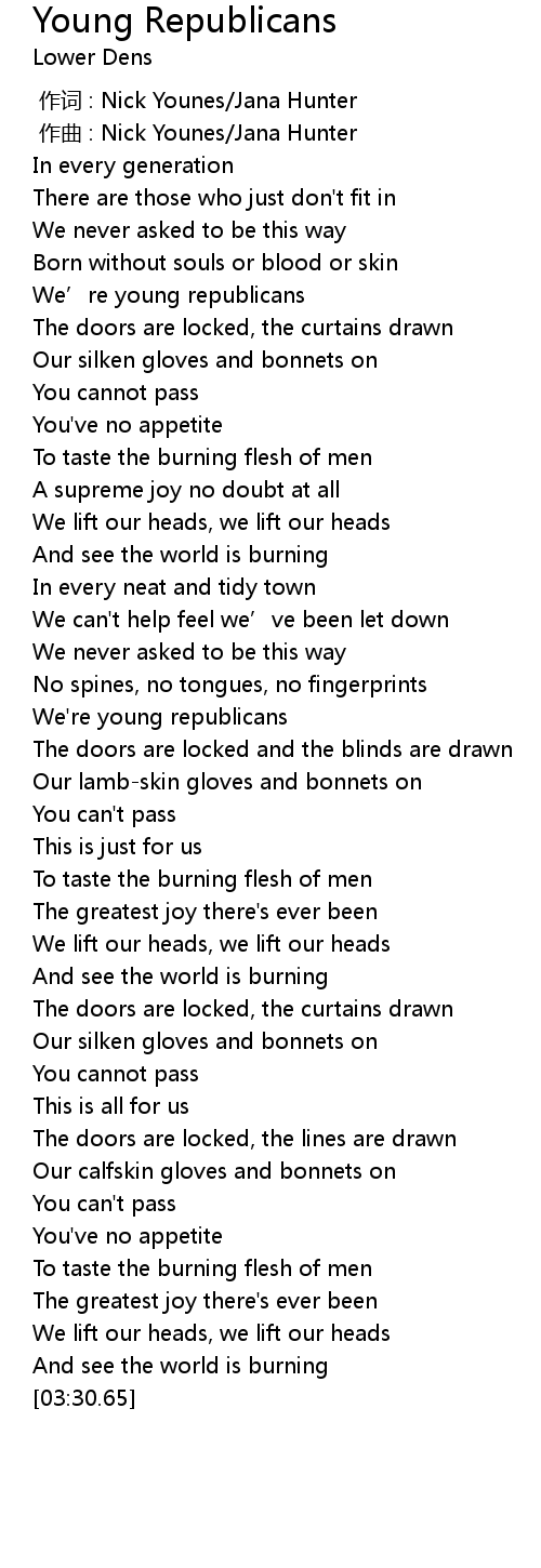 | [00:44.60] | We’re young republicans |