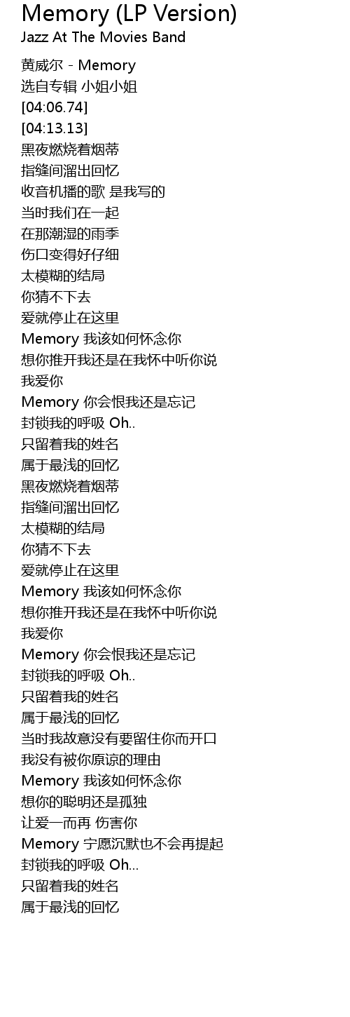 | [02:16.09] | Memory 我该如何怀念你 |