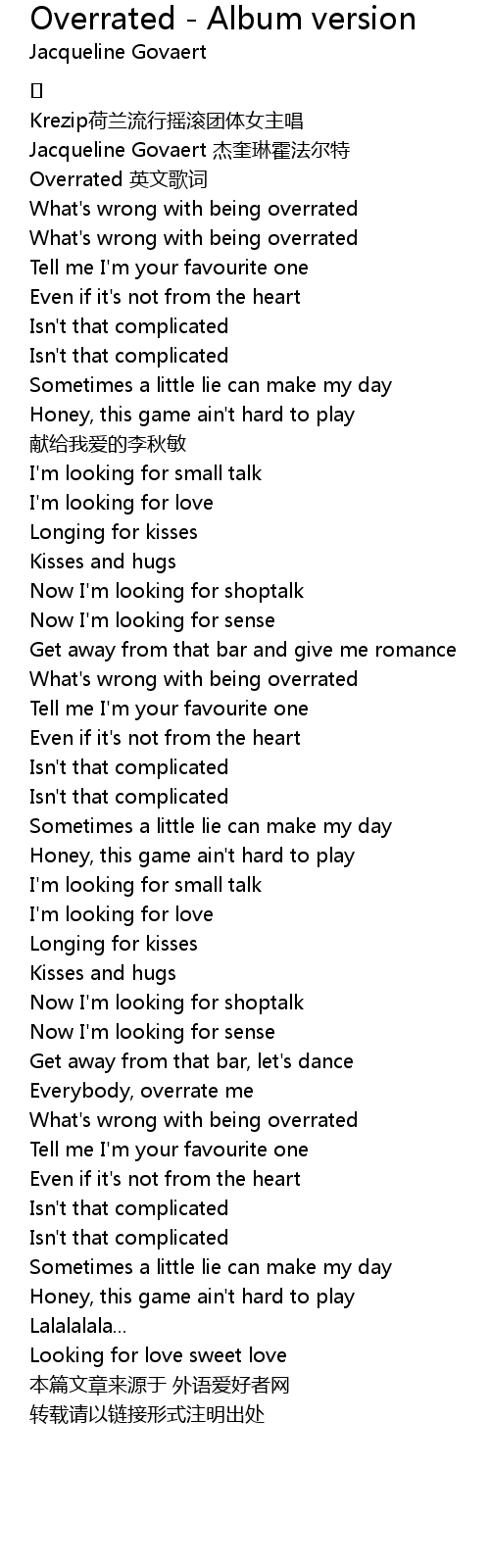 | [00:10.577] | Jacqueline Govaert jie kui lin huo fa er te |