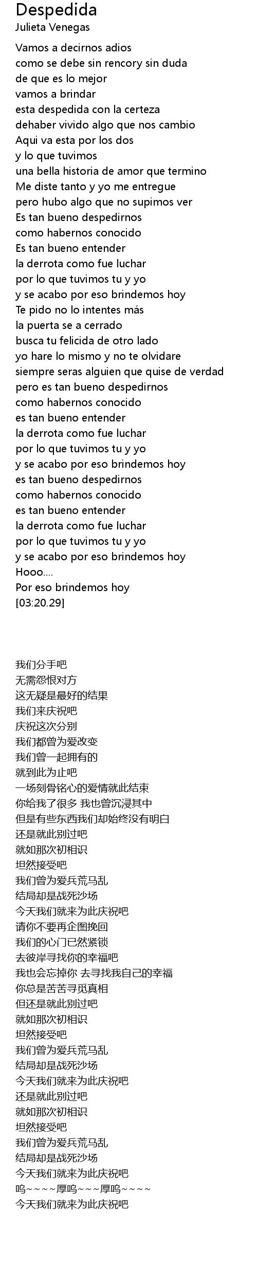 | [00:20.46] | esta despedida con la certeza |