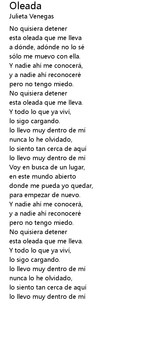 | esta oleada que me lleva. | |