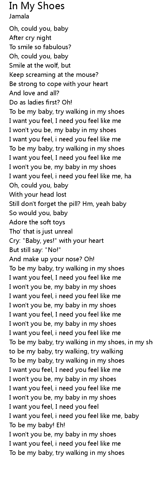 To be my baby, try walking in my shoes, in my shoes