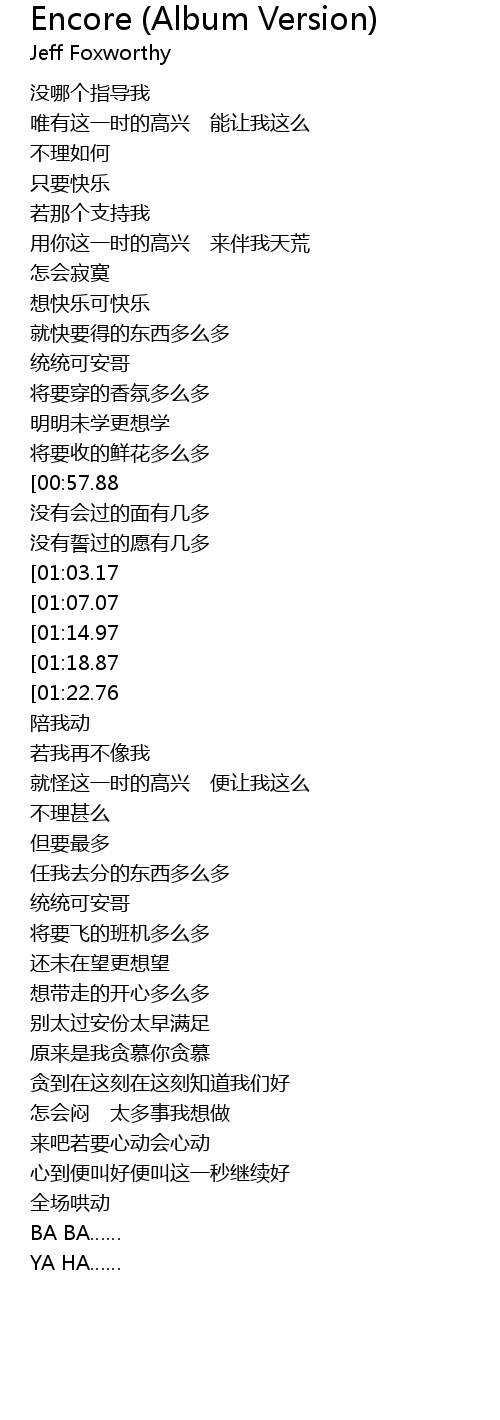 | [00:18.98] | 唯有这一时的高兴 能让我这么 |