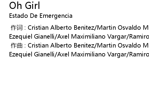 | [00:00.000] | zuo qu : Cristian Alberto Benitez Martin Osvaldo Melon Agustin Ezequiel Gianelli Axel Maximiliano Vargar Ramiro Alejandro Scarinci |