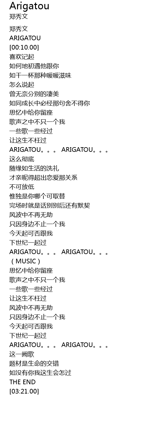 | [00:57.00] | ARIGATOU。。。 ARIGATOU。。。 |