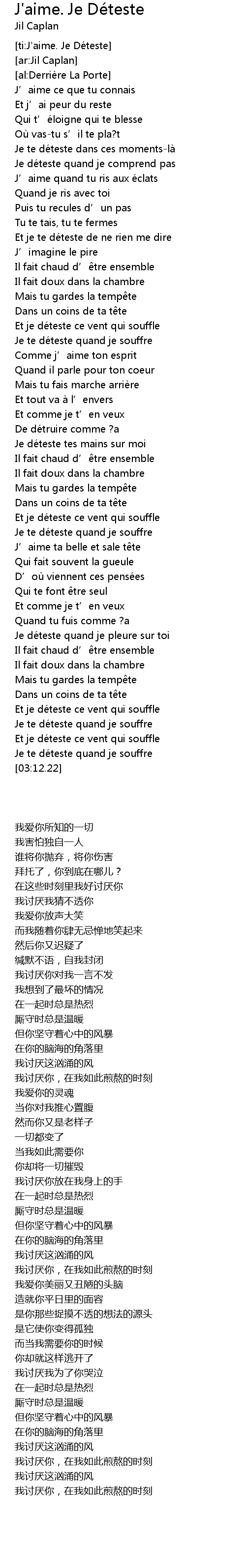 | [00:23.75] | Je te déteste dans ces moments-là |