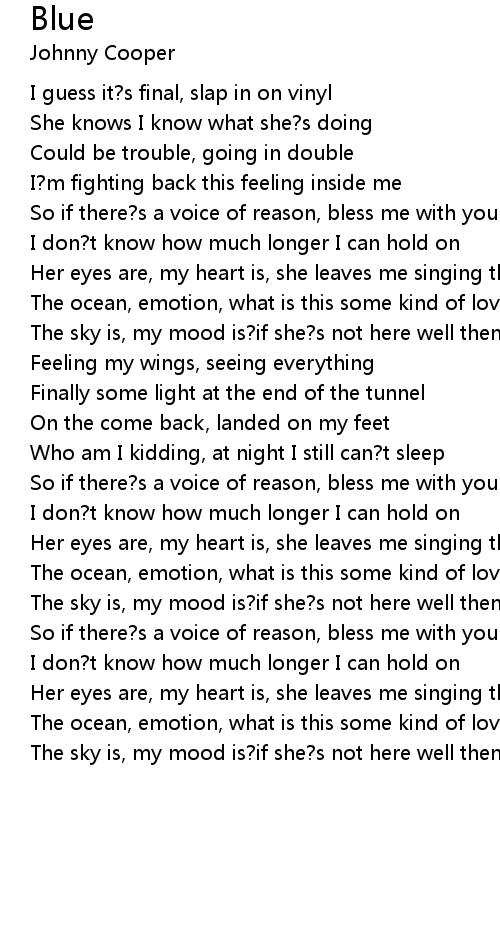 The sky is, my mood is?if she?s not here well then I?m just feeling?blue |