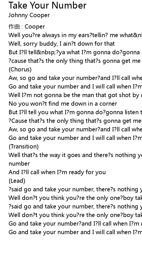 | Go and take your number? and I? ll call when I? m ready for you. | |
