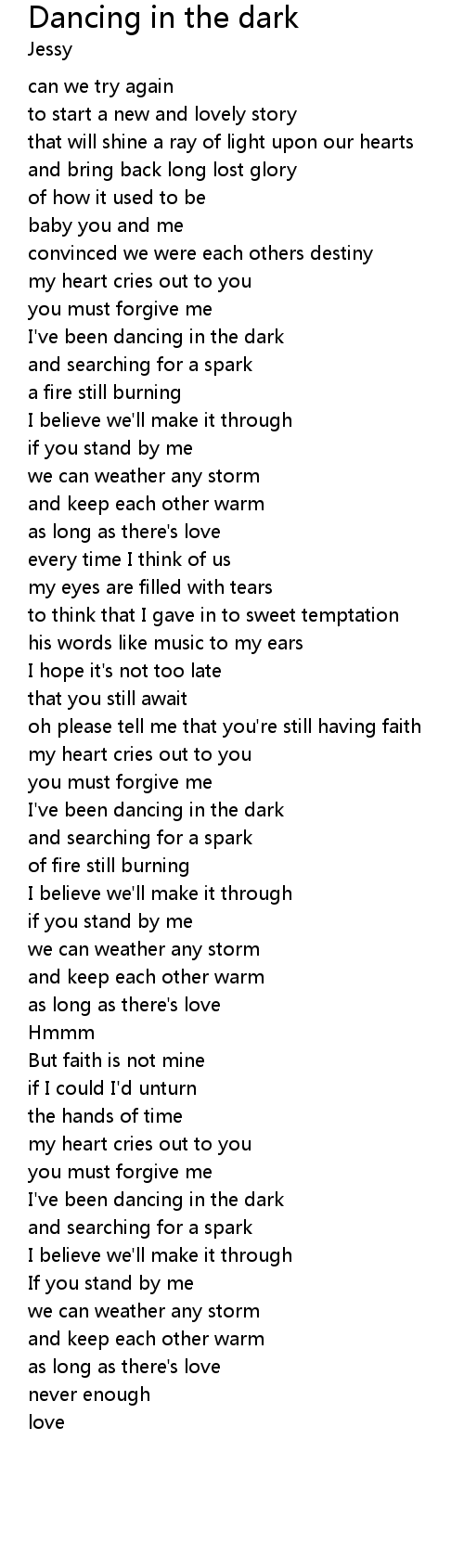 | [00:43.14] | I've been dancing in the dark |