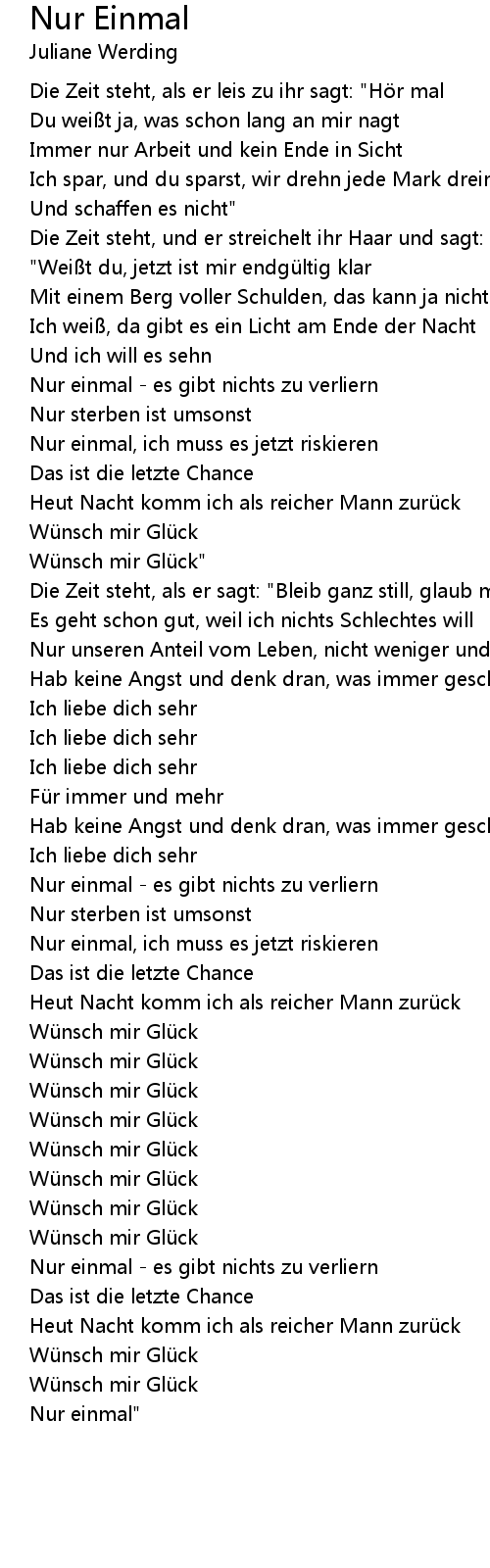 | Die Zeit steht, als er leis zu ihr sagt: " H r mal | |