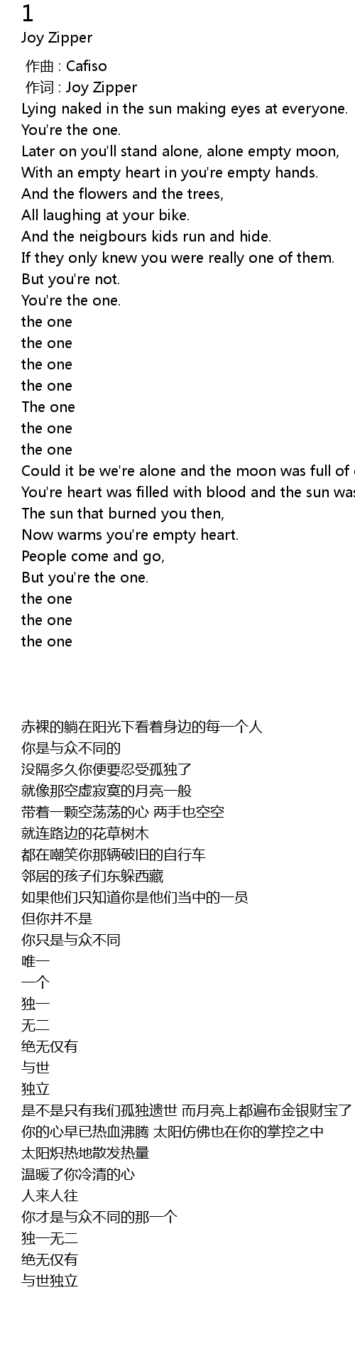 | [00:01.00] | 作词 : Joy Zipper |