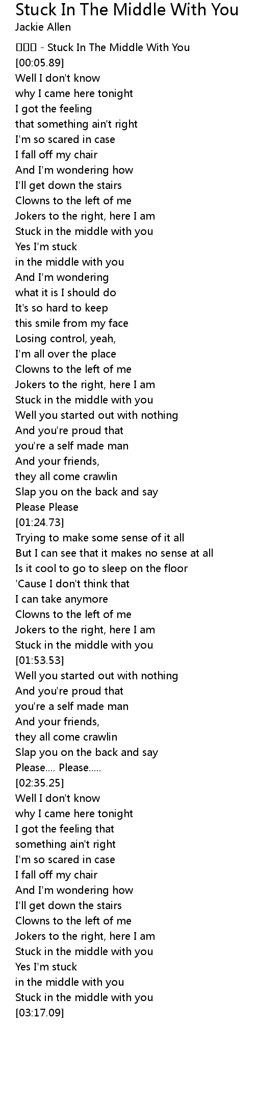 | [03:10.42] | Stuck in the middle with you |