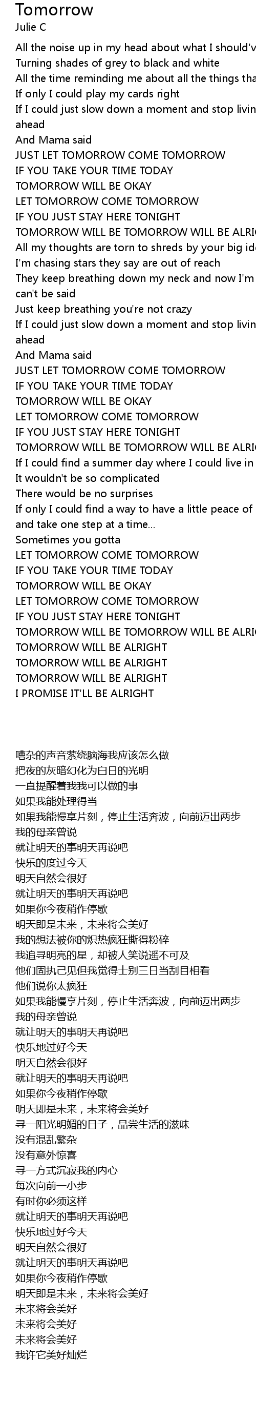 TOMORROW WILL BE TOMORROW WILL BE ALRIGHT |