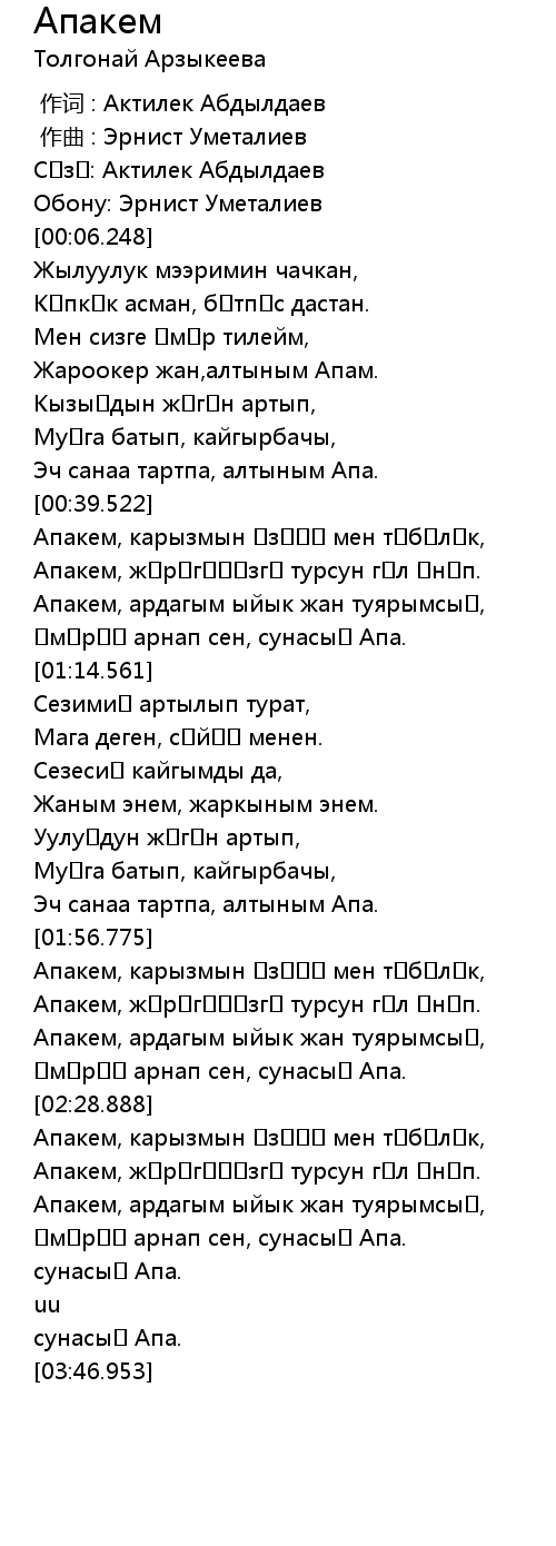 [02:55.660] Апакем, карызмын өзүңө мен түбөлүк,