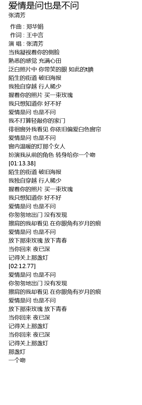 | [01:53.96] | ài qíng shì wèn yě shì bù wèn |