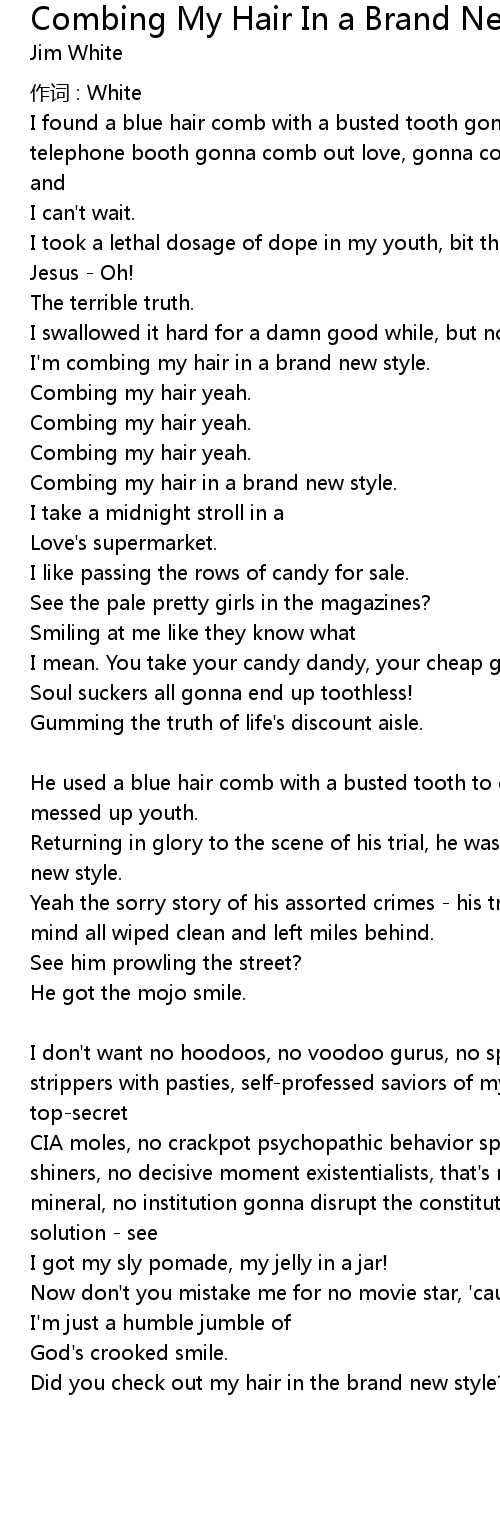 | Me I'm combing my hair in a brand new style. [CHORUS] | |