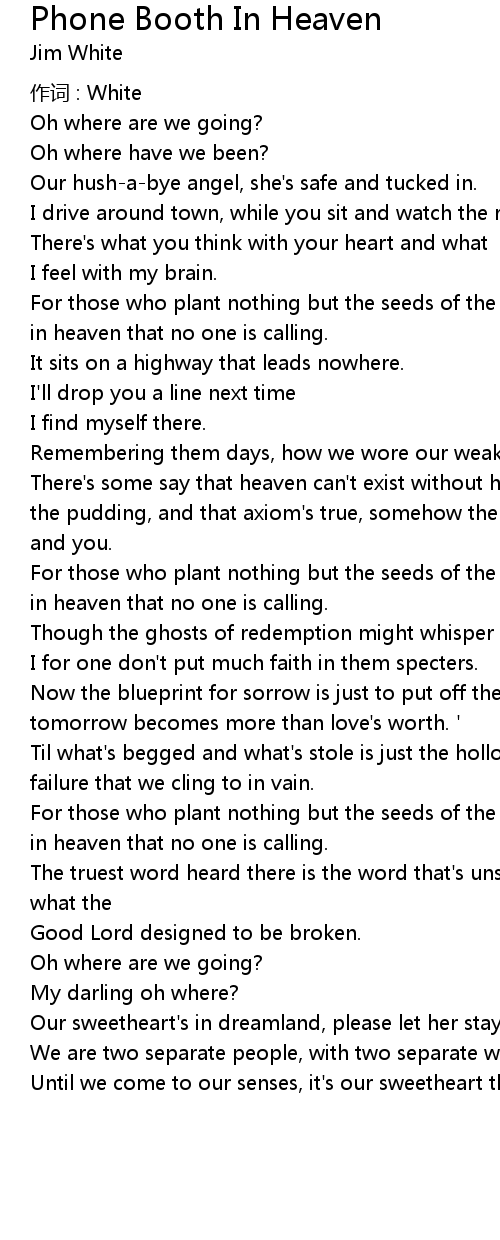 | Song | Phone Booth In Heaven |