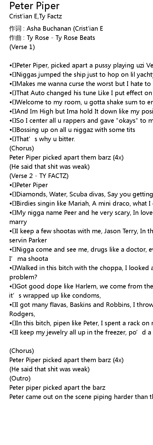 | Peter Piper, picked apart a pussy playing uzi Vert | |