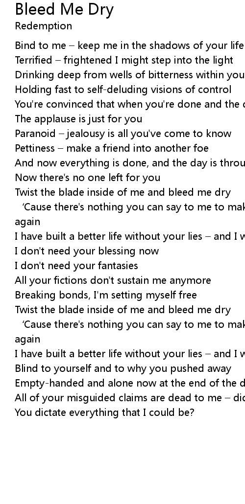 | Twist the blade inside of me and bleed me dry | |