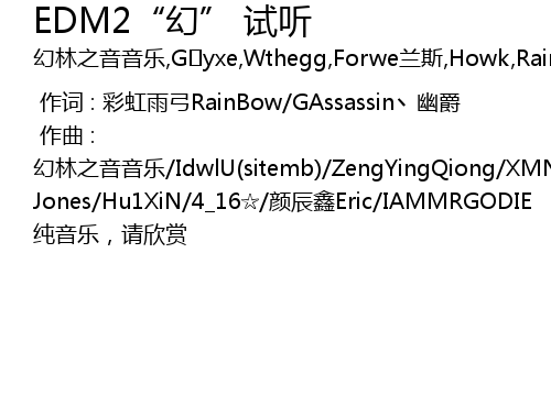 | [00:01.000] | 作曲 : 幻林之音音乐/IdwlU(sitemb)/ZengYingQiong/XMNoise/N7do/Alan Jones/Hu1XiN/4_16☆/颜辰鑫Eric/IAMMRGODIE |