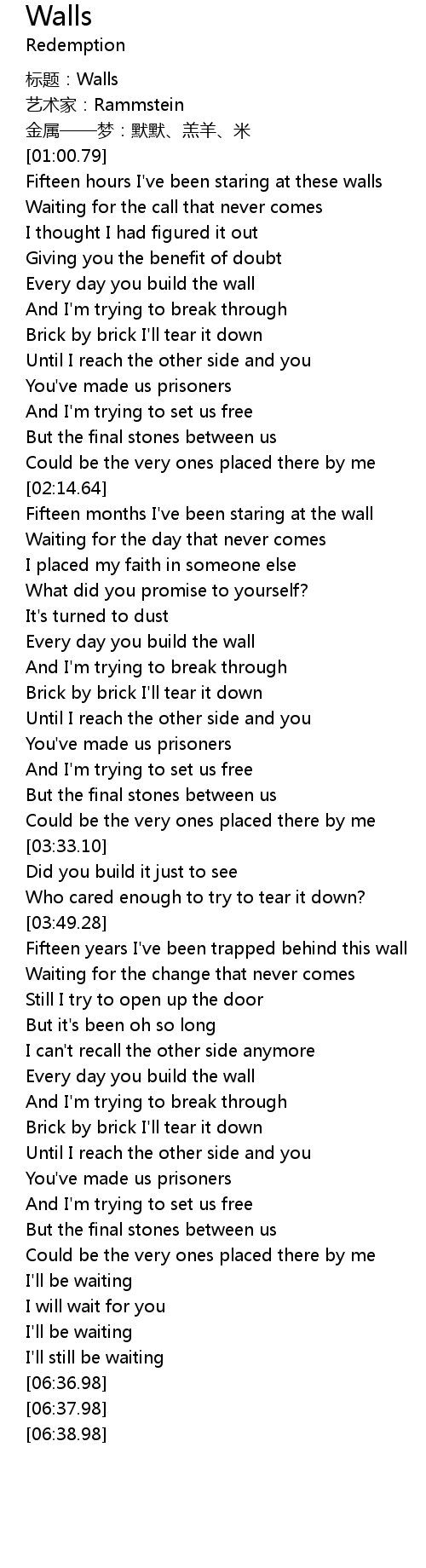 | [05:13.03] | Fifteen years I' ve been trapped behind this wall |