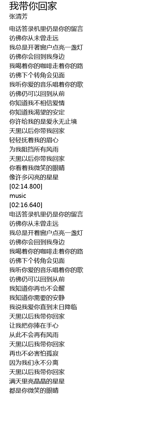 | [03:31.990] | tian hei yi hou wo dai ni hui jia |