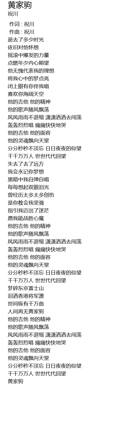 | [03:33.933] | 人间再无黄家驹 |