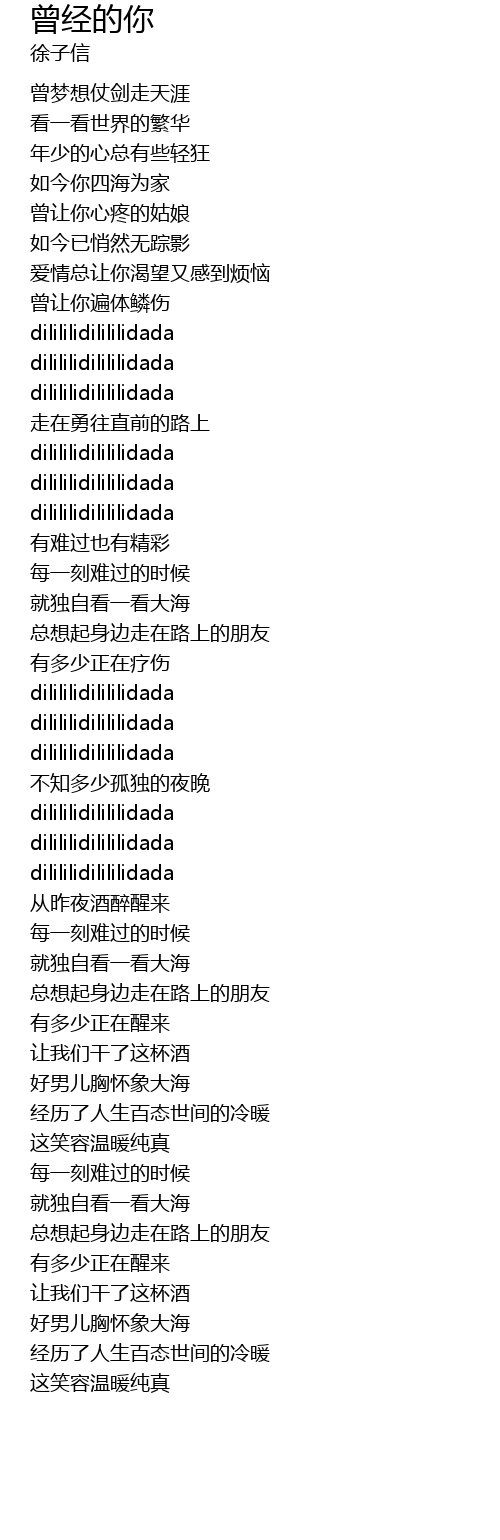 | [00:10.73] | 曾梦想仗剑走天涯 |
