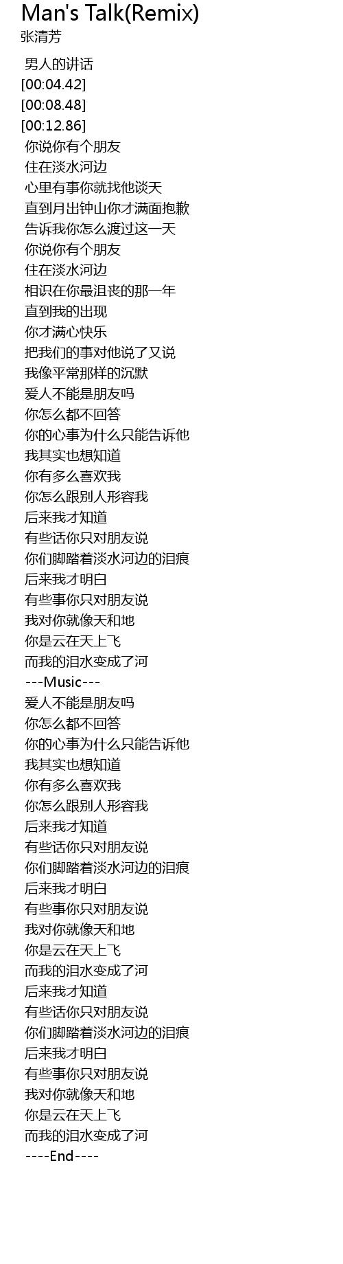 | [00:17.39] | nǐ shuō nǐ yǒu gè péng yǒu |