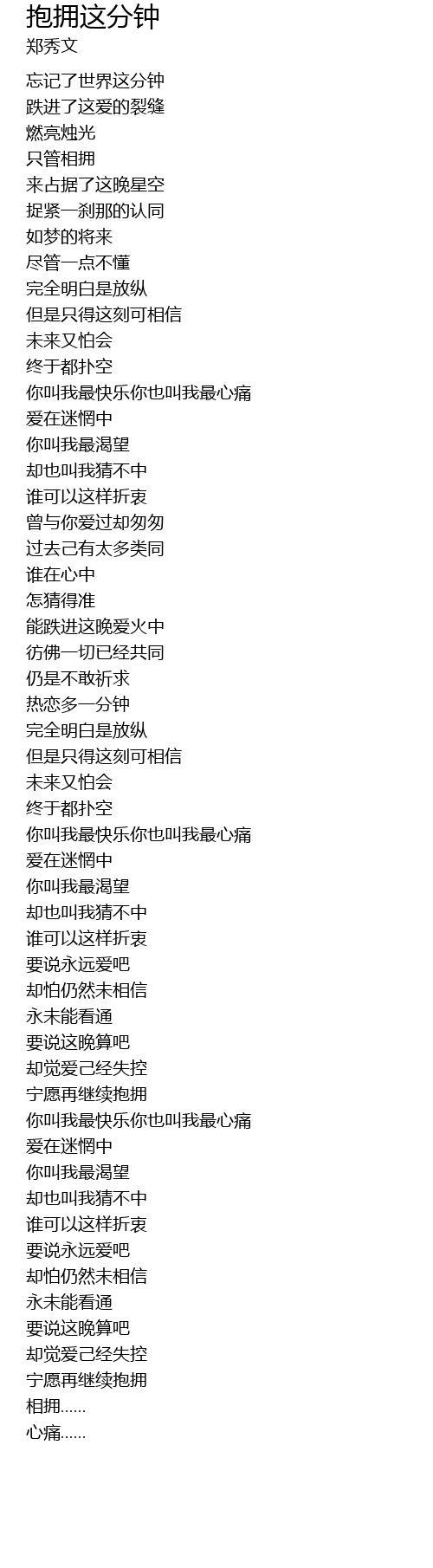 | Song | 抱拥这分钟 |