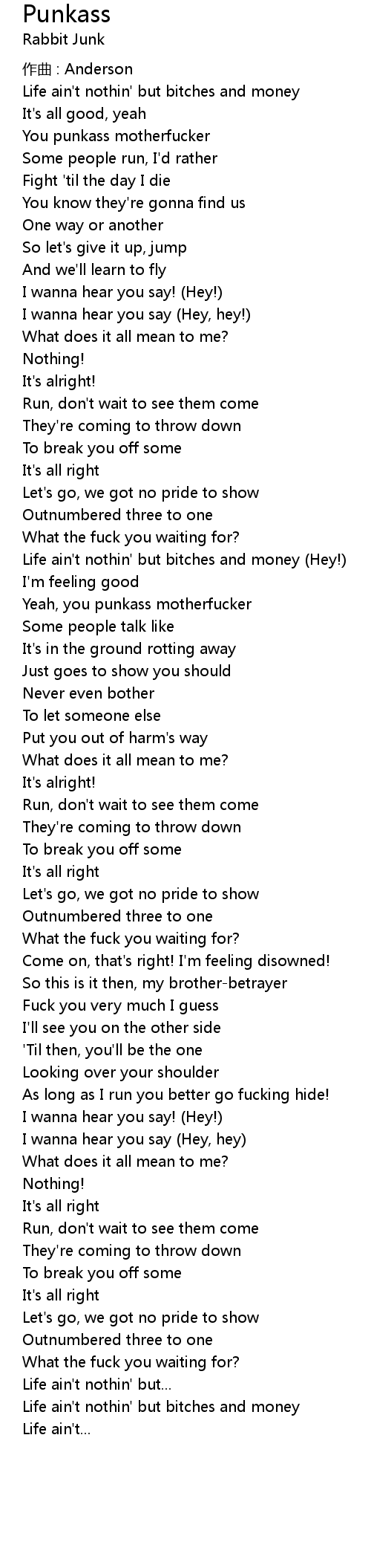 | Life ain't nothin' but bitches and money (Hey!) | |