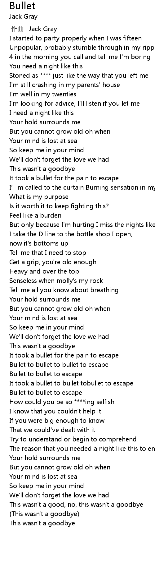 | [02:35.56] | It took a bullet to bullet tobullet to escape |