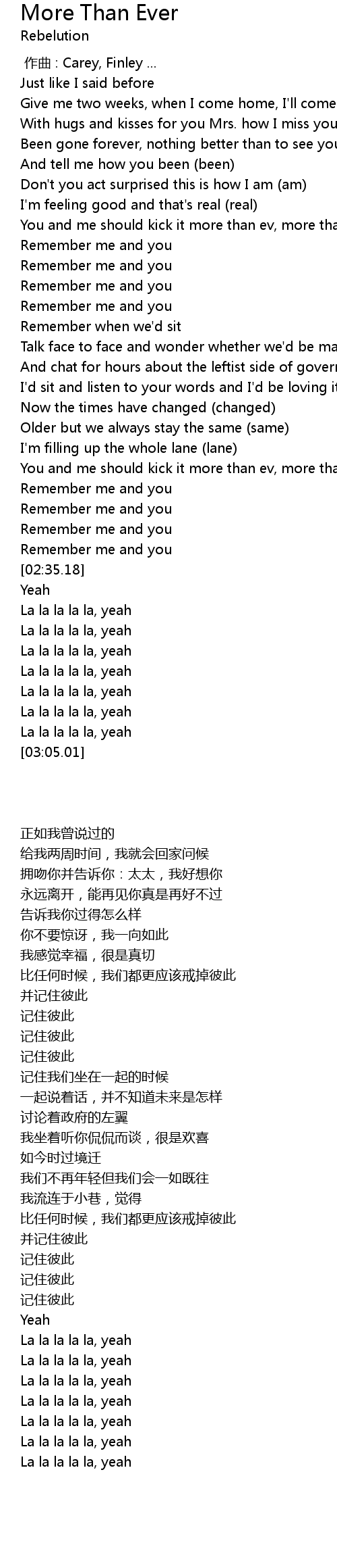 | [01:54.47] | You and me should kick it more than ev, more than ever, more than ev |