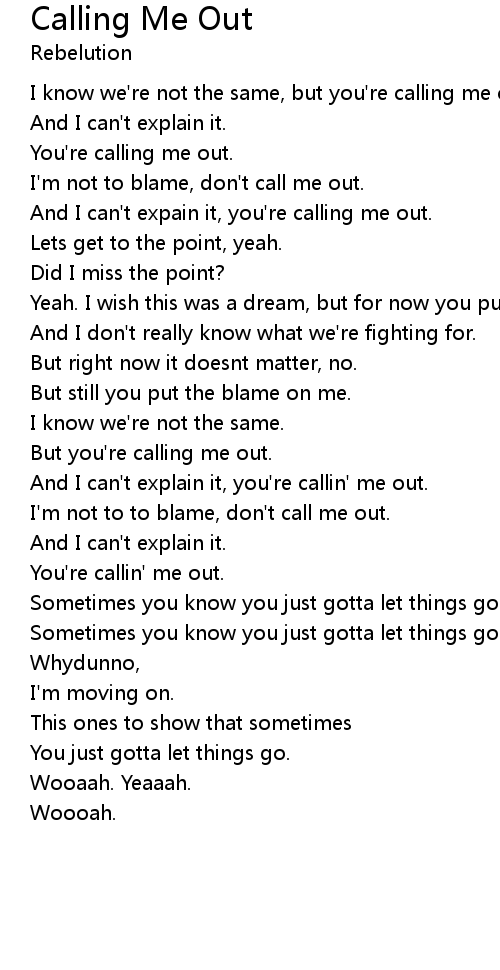 Calling Me Out Lyrics