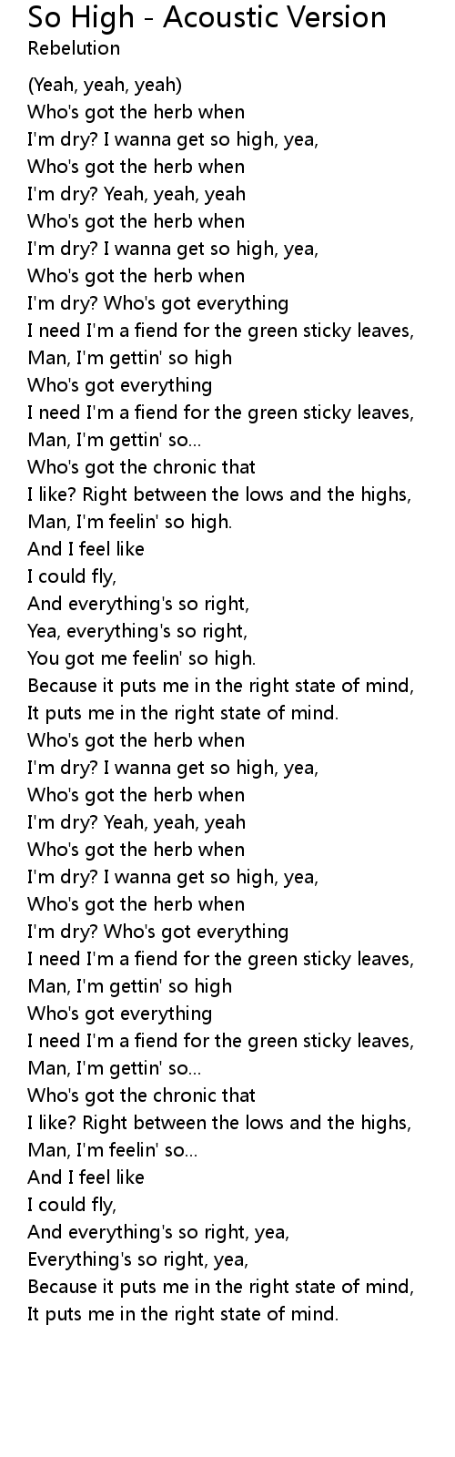 So High - Acoustic Version Lyrics