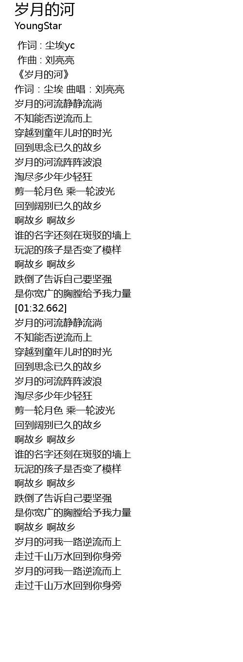 | [00:29.481] | 岁月的河流阵阵波浪 |