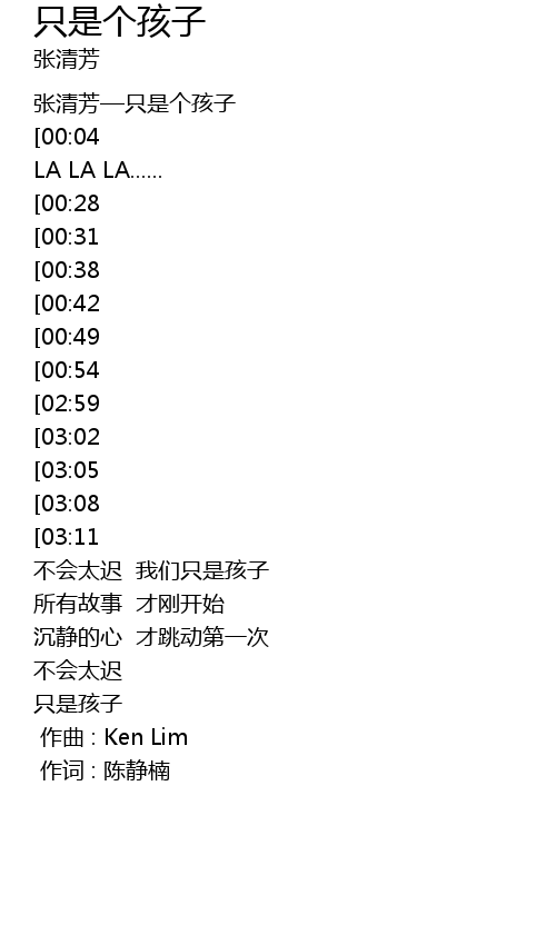 | [00:00] | zhāng qīng fāng zhǐ shì gè hái zi |