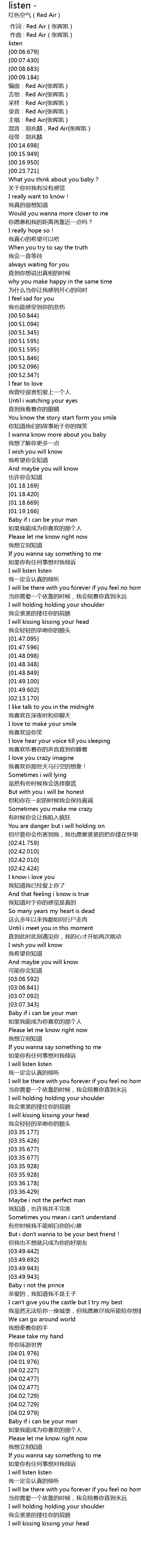 | [00:09.936] | biān qǔ: Red Air zhāng huī kǎi |