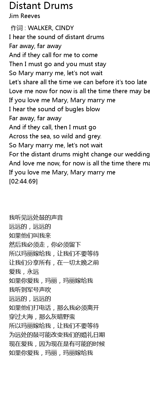 | [00:42.62] | So Mary marry me, let' s not wait |